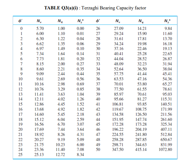 Table Q3 A I Terzaghi Bearing Capacity Factor 0 1 Chegg Com